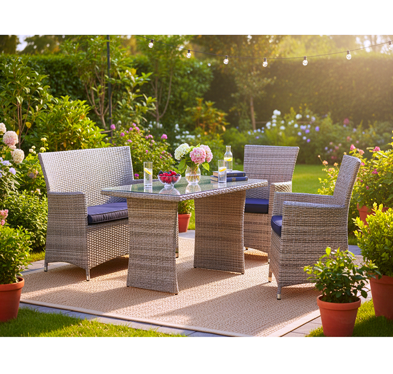 The indoor main products: sofa set, dining set, basket, all kinds of tables and chairs made of wood frame, weaving rattan, rope material, ….